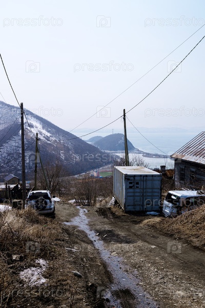Мокрая грязная дорога в городе Петропавловск-Камчатка