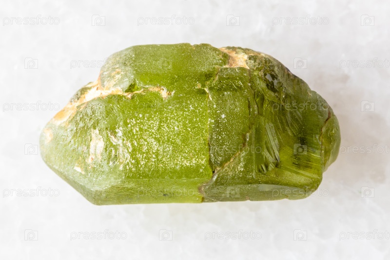 Образец сырого кристалла перидода на белом мраморе
