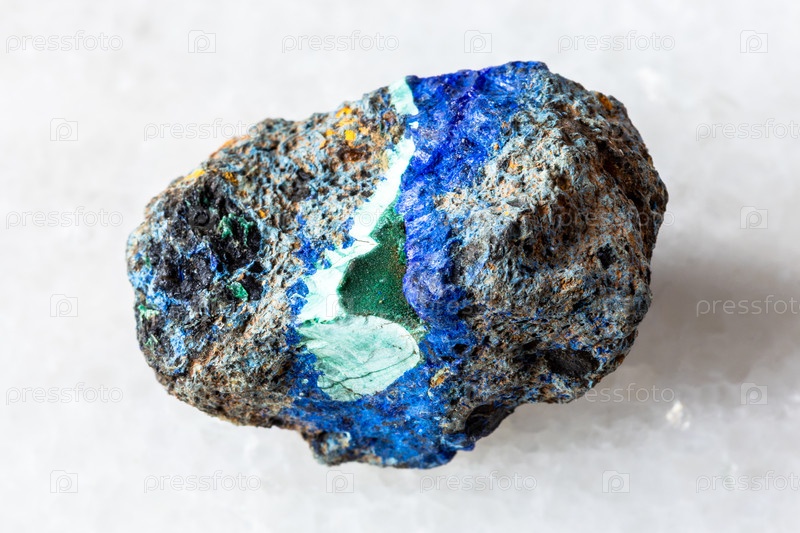 Необработанный азурит и малахитовый минерал на белом мраморе