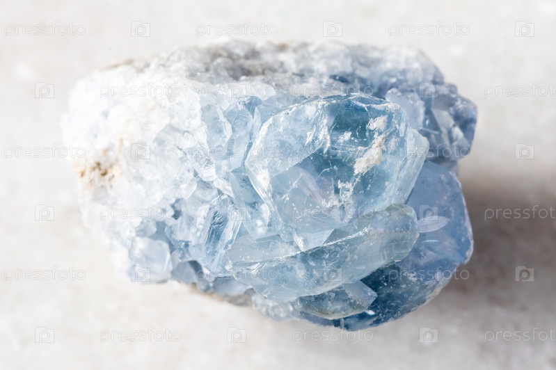 Образец необработанного минерала селестита на белом мраморе