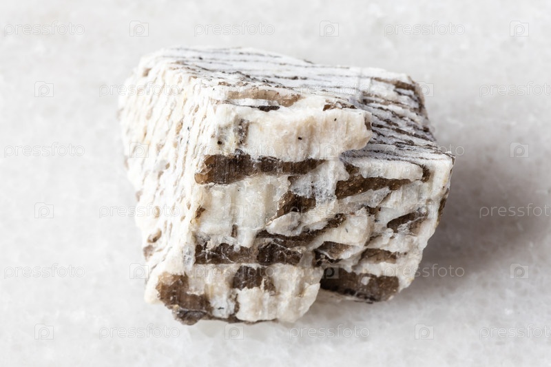 Необработанный написанный гранит минерал на белом мраморе