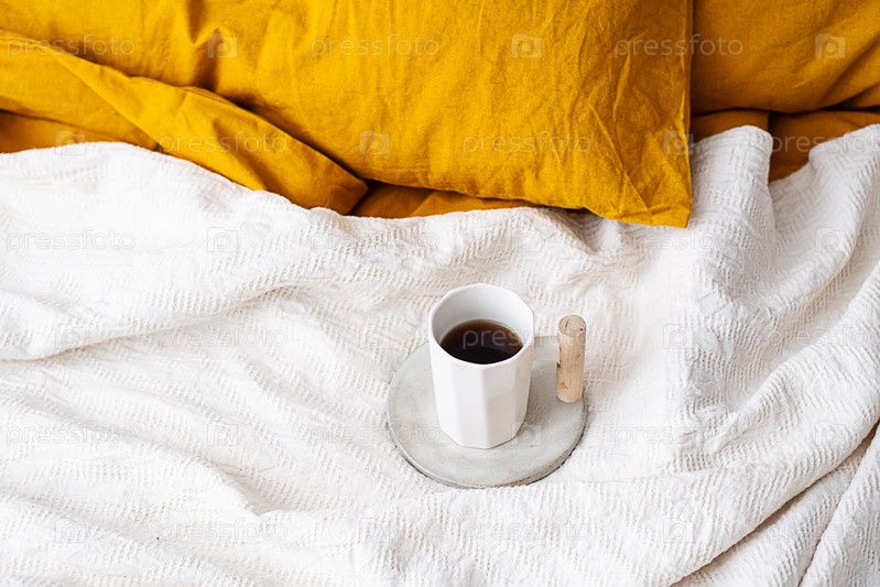Кофейная чашка на кровати