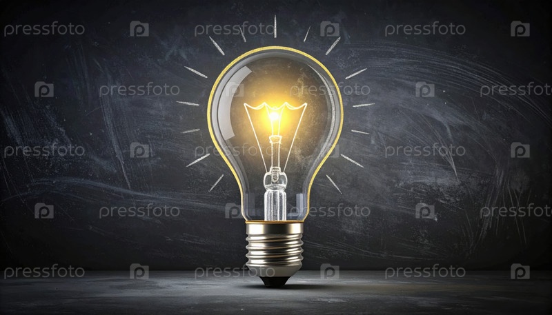 Световая лампочка, нарисованная на доске, представляющая творчество, яркие идеи, инновации и моменты вдохновения в образовании или бизнесе