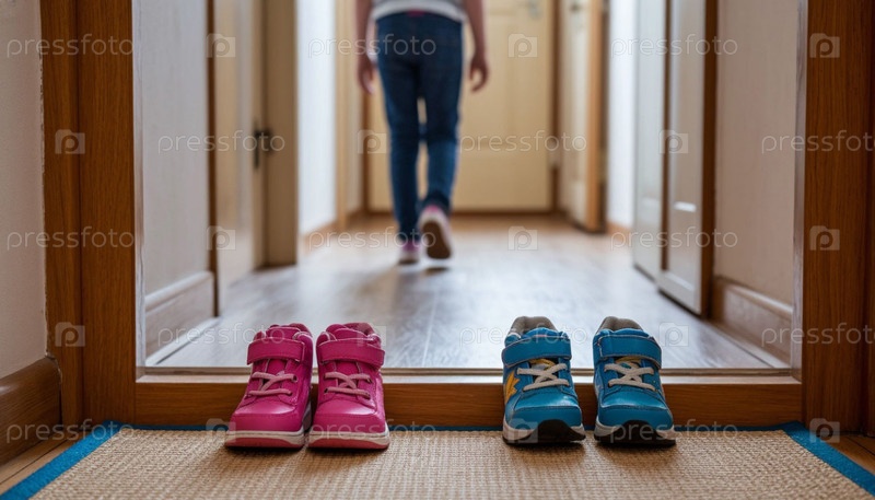 Детские туфли разных размеров у входной двери