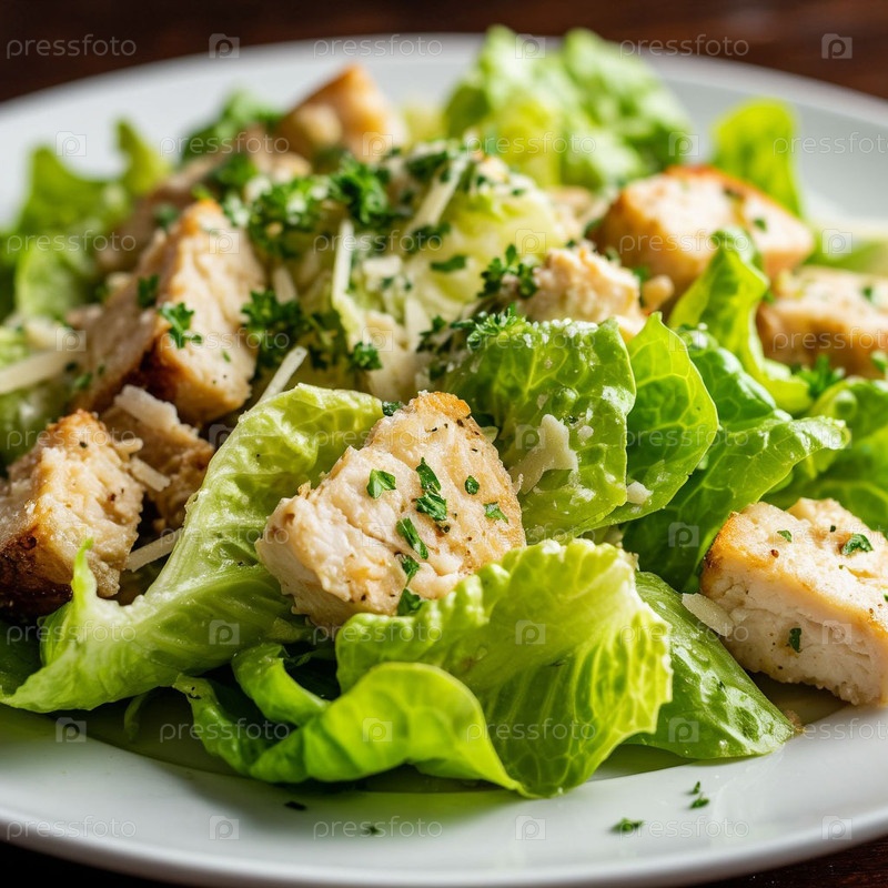 Салат Цезаря на тарелке