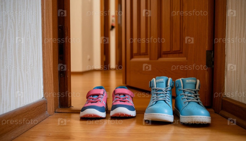 Детские туфли разных размеров у входной двери