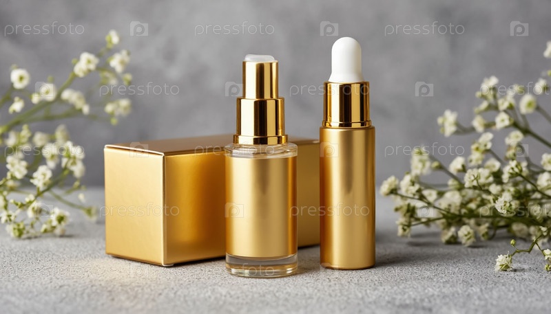 Косметическая сыворотка для лица в золотой бутылке