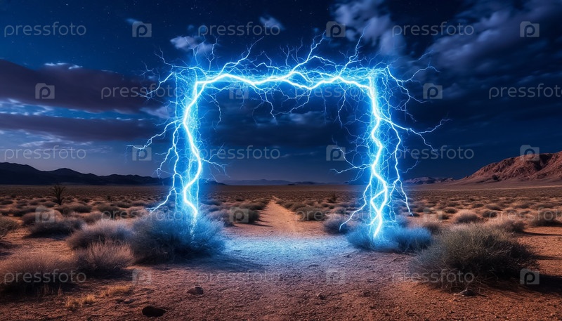 Портал мигающей молнии в ночной пустыне