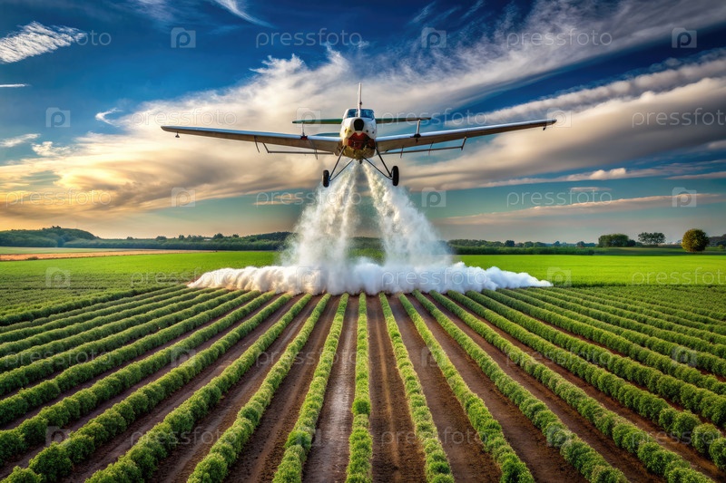 Самолет распыляет воду на поле, генерируя AI
