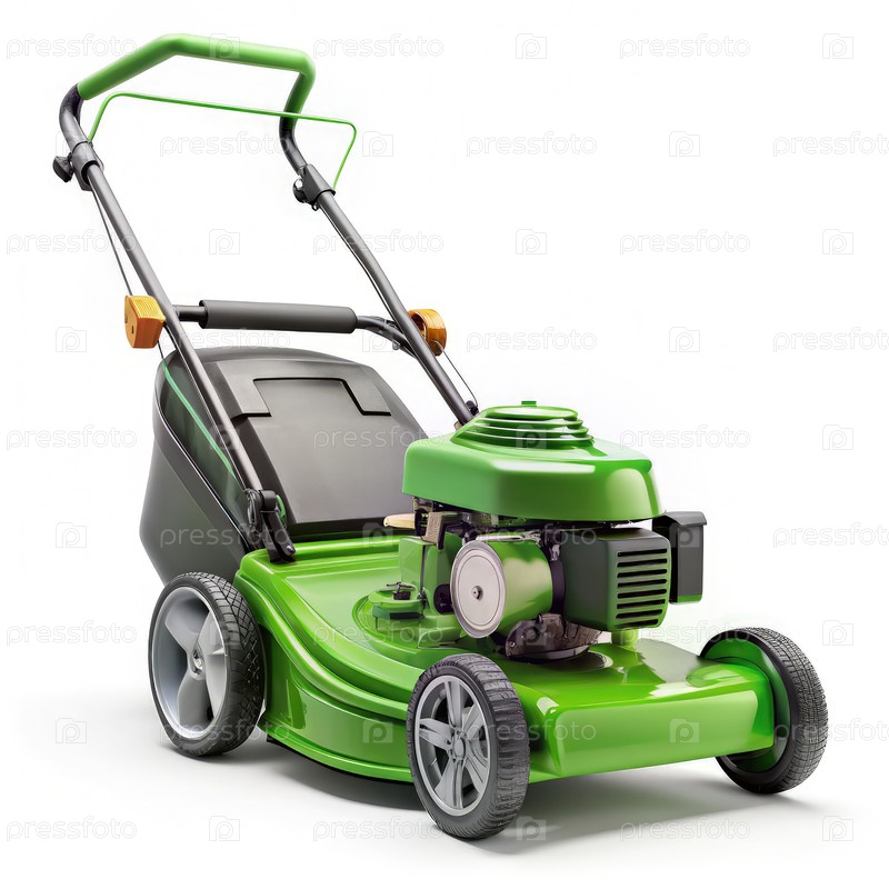 Зеленая газонокосилка на белом фоне, генерирующая ИИ