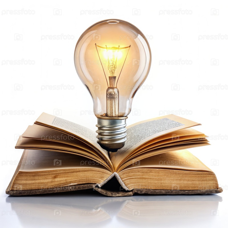 Открытая книга с лампочкой, генерирующая ИИ