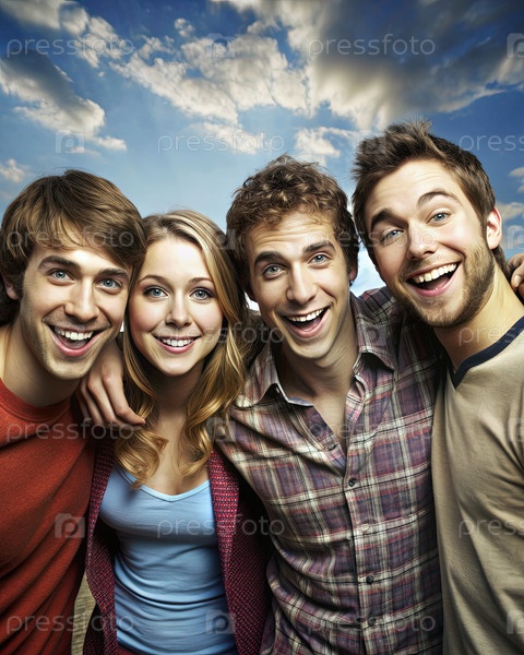 Группа молодых людей, стоящих вместе и генерирующих ИИ