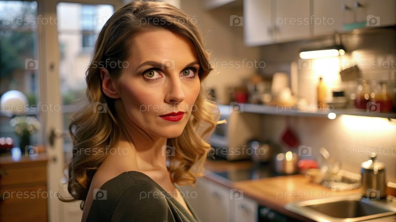 Женщина стоит у кухонной раковины, генерируя ИИ