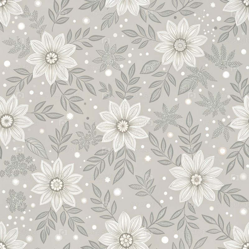 Серая и белая обои с белыми цветами. генерирование ИИ