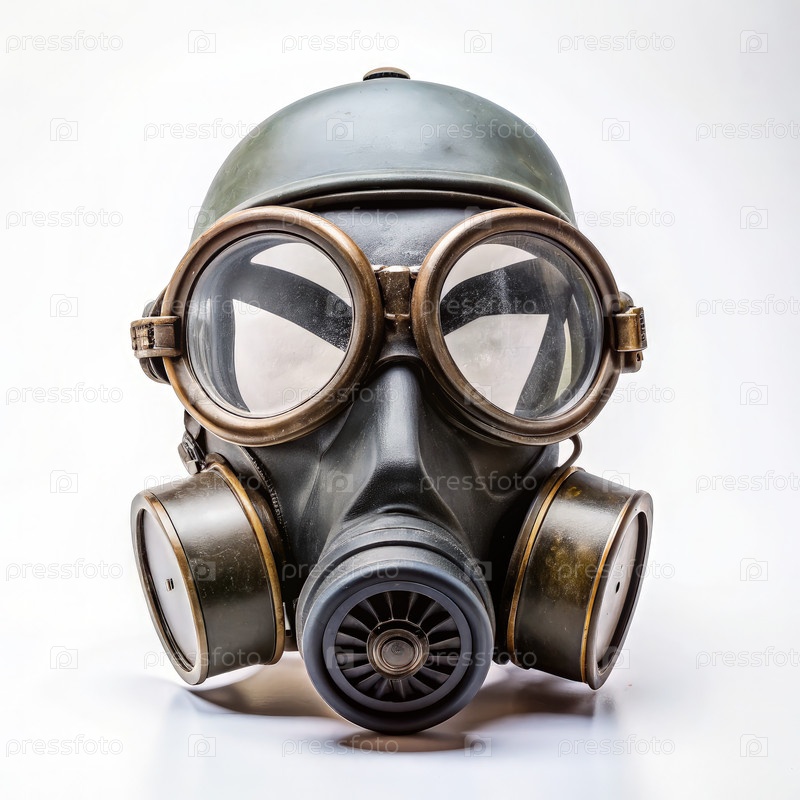 Газовая маска с очками на белом фоне