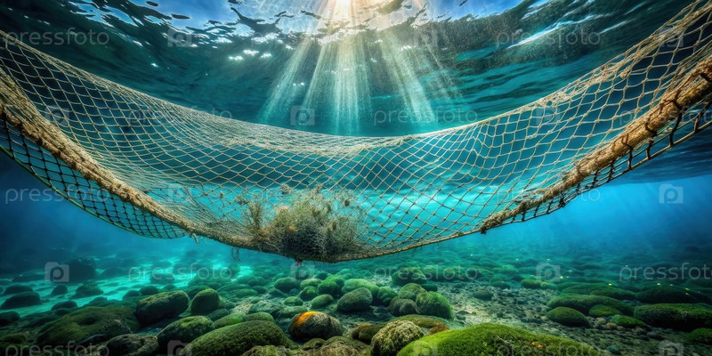 Солнечный свет проникает через рыболовные сети в океане, генерируя ИИ