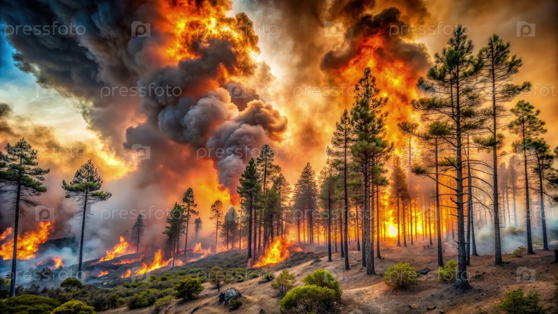 Лес покрыт пламенем и дымом, генерирующим ИИ