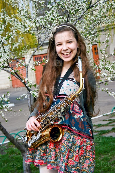 Красивая девушка с саксофоном