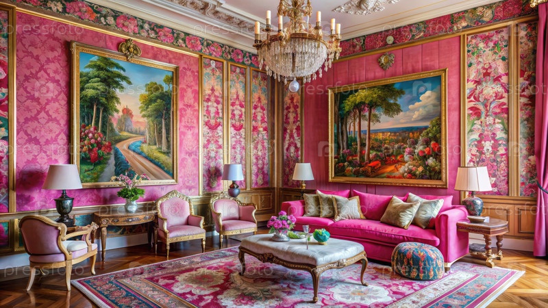 Элегантная гостиная с люстрами и мебелью