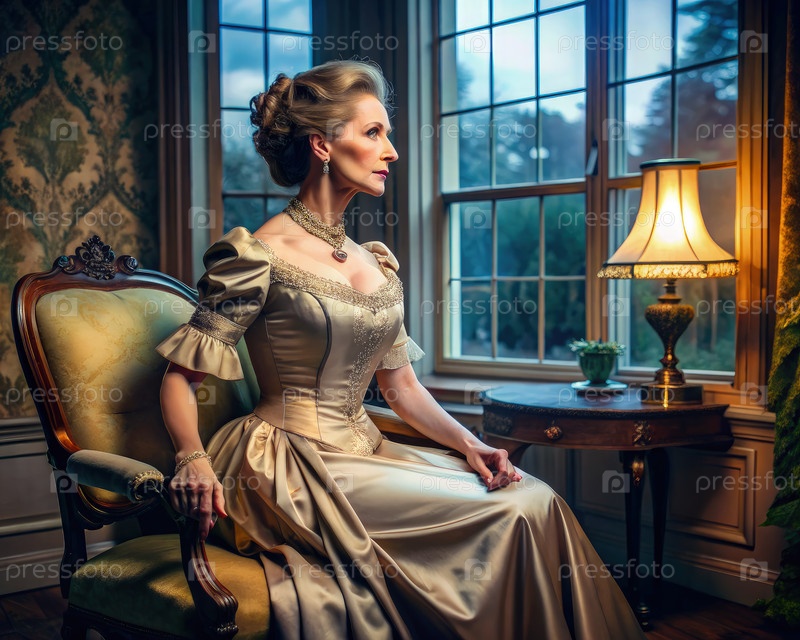 Женщина сидит на стуле у окна, генерируя ИИ