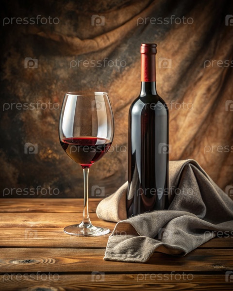 Стакан красного вина рядом с бутылкой стандартной шкалы RZ X