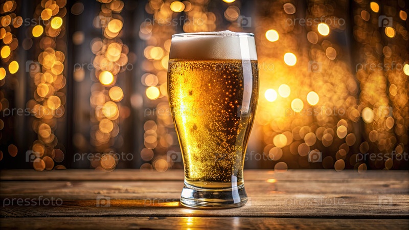Стакан пива на деревянном столе, генерирующий ИИ A