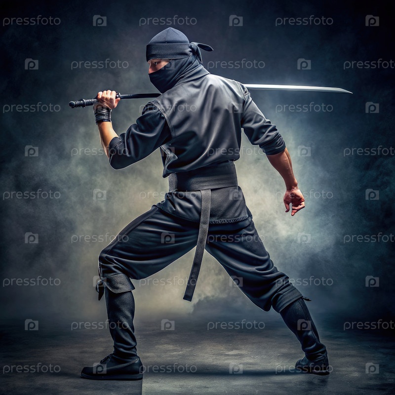 Воин-ниндзя держит меч, генерируя ИИ