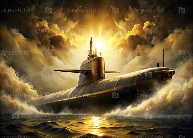 Подводная лодка плавает в глубине океана, генерируя ИИ