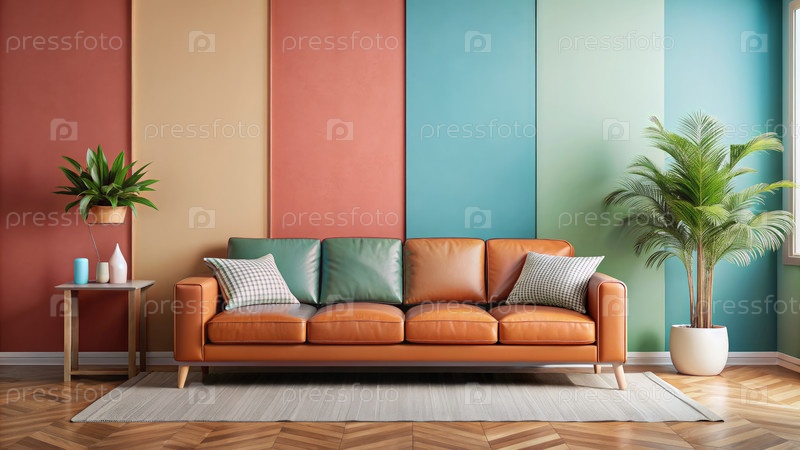 Гостиная с диваном и гончарным растением. генерация ИИ