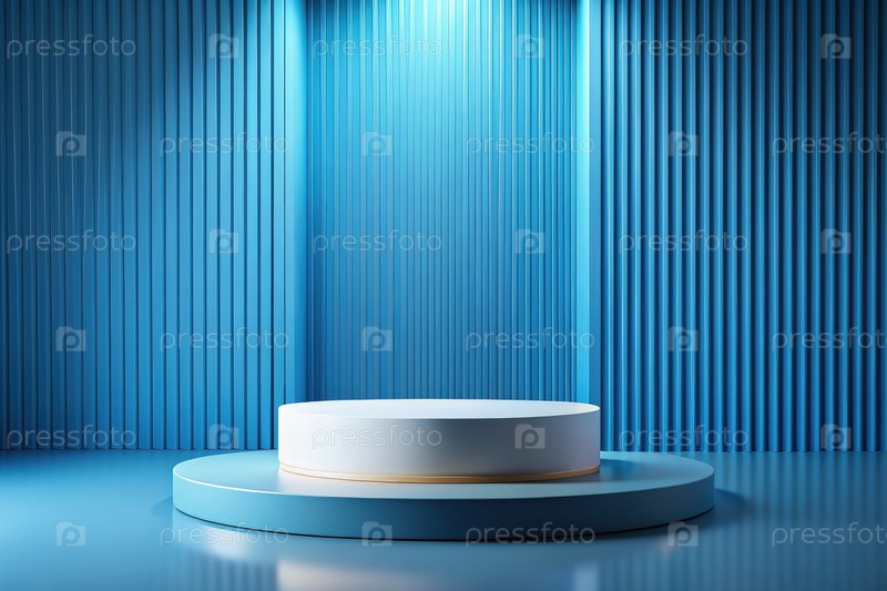 Голубая комната с белым круглым объектом на полу
