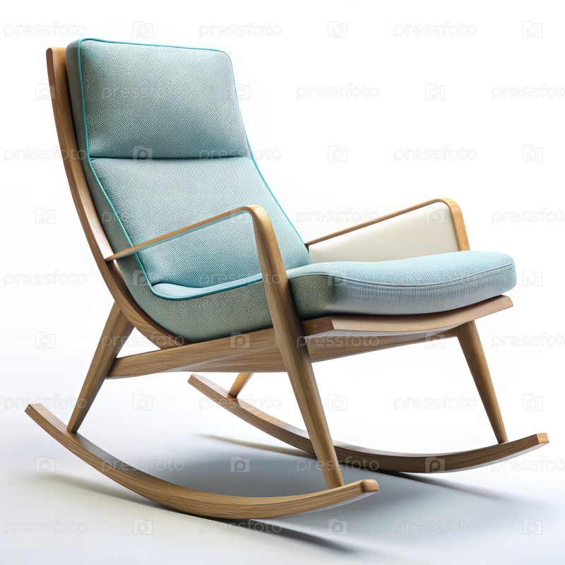 Деревянный кресло-качалка с голубой подушкой