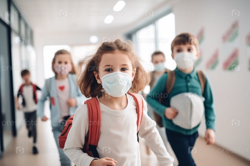 Веселые студенты бегут по коридору, взволнованы и энергичны