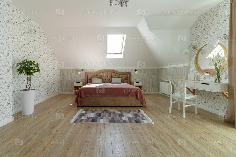 Уютная спальня на чердаке с современным дизайном и естественным освещением