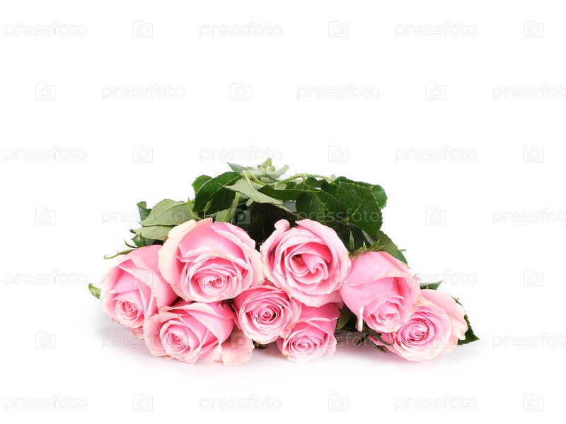 Роскошный букет мягких розовых роз, изолированных на белом фоне с готовой ошейником