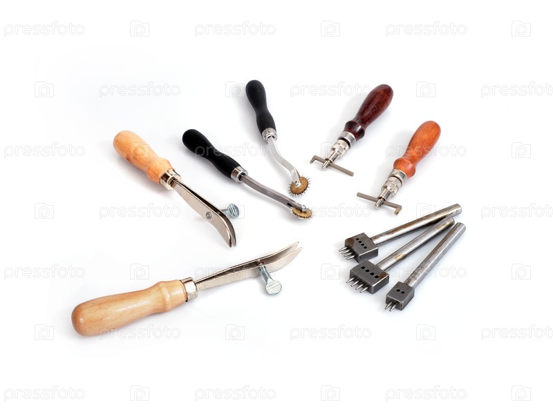 Инструменты для работы с кожей, изолированные на белом фоне