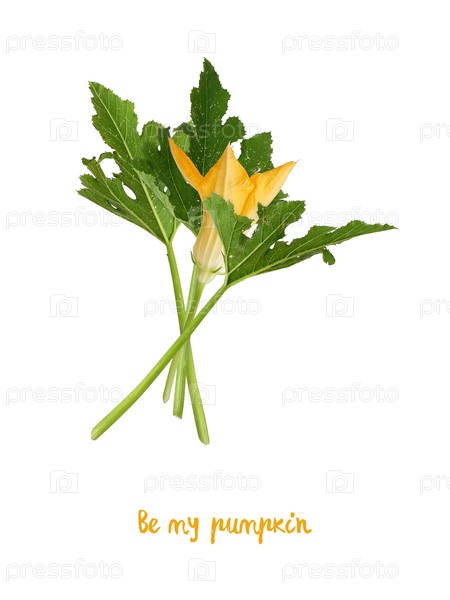 Букет тыквенных цветов с моим текстом тыквы, изолированным на белом фоне, вырезка готова