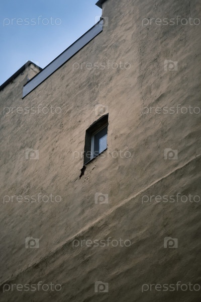 Одинокое маленькое окно на пустой стене, день ясный