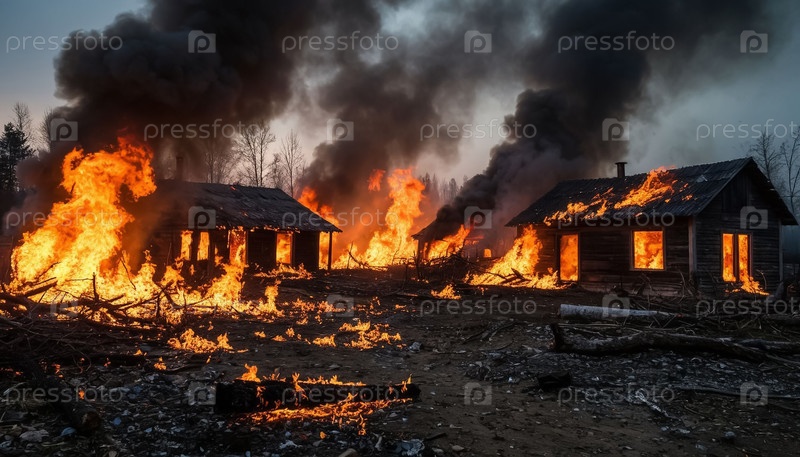 Пожар в деревне, вызванный АИ