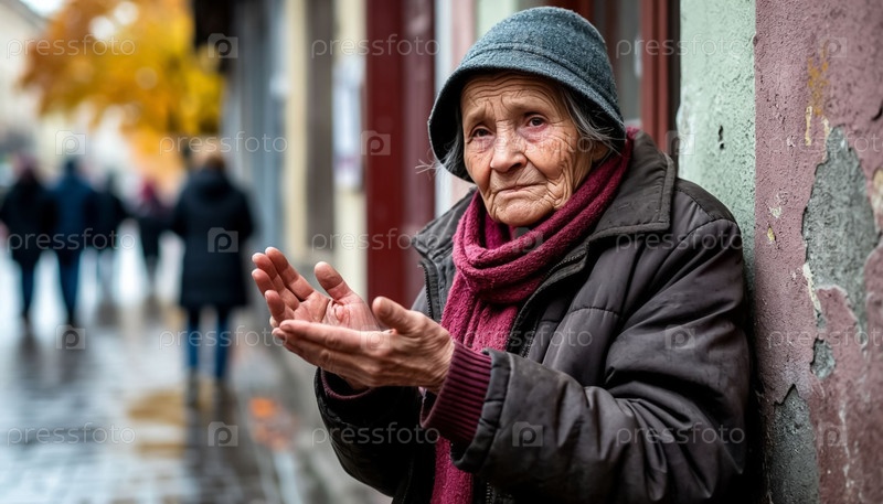 Одинокая бедная бабушка просит помощи или милостыни