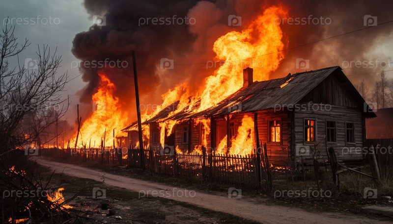 Пожар в деревне, вызванный АИ