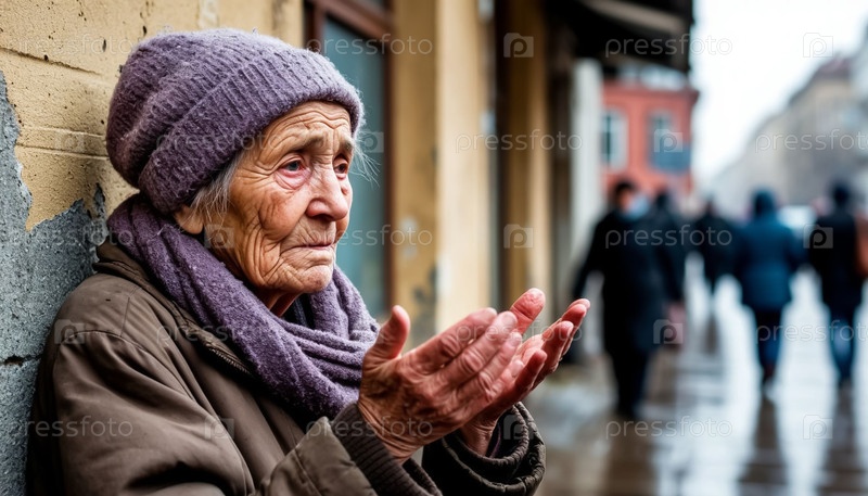 Одинокая бедная бабушка просит помощи или милостыни