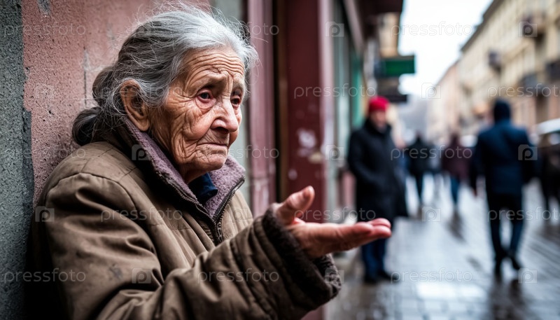 Одинокая бедная бабушка просит помощи или милостыни