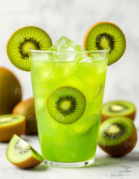 Киви-лимонад на белом фоне.Generating AI
