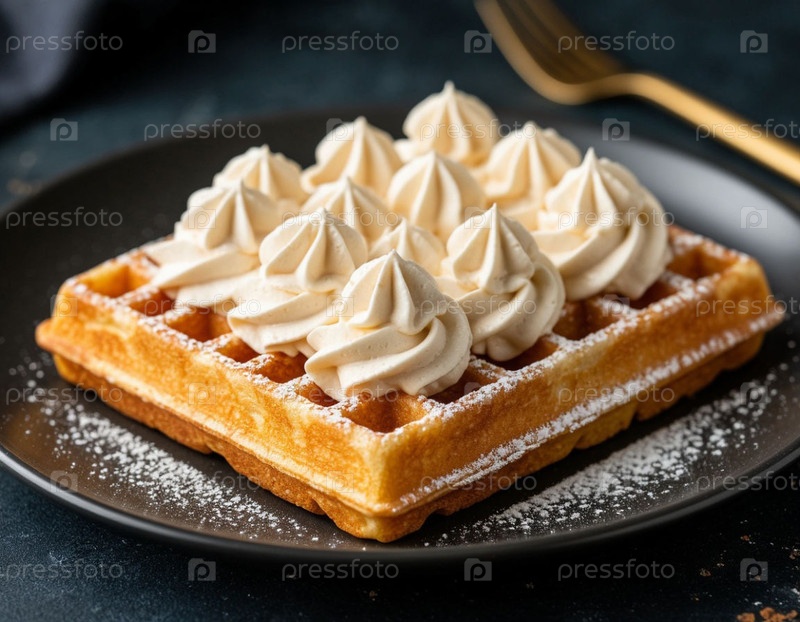 Вафли со сливком на темном фоне. генерация ИИ