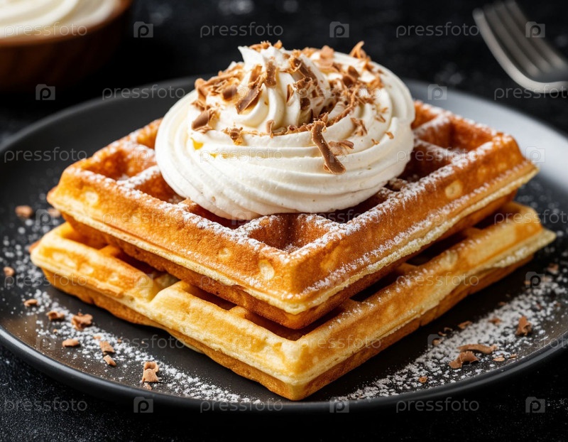 Вафли со сливком на темном фоне. генерация ИИ