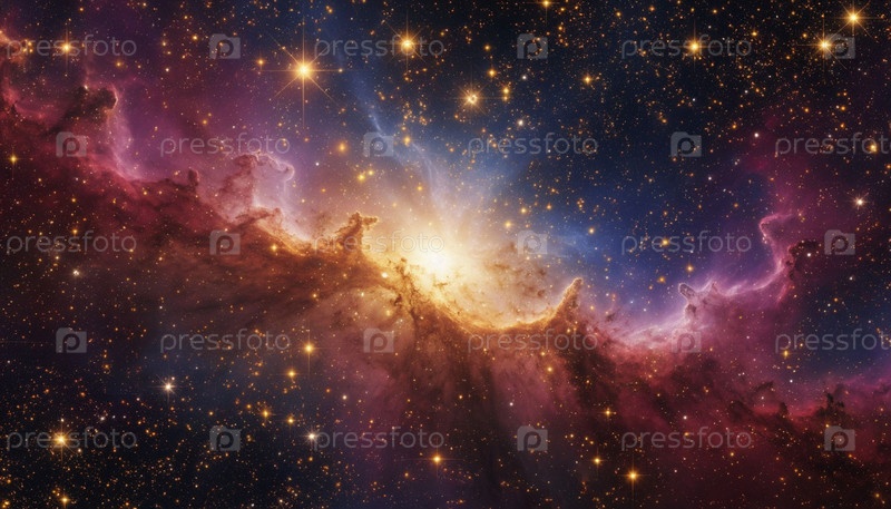 Космическая туманность яркая с золотыми искрами