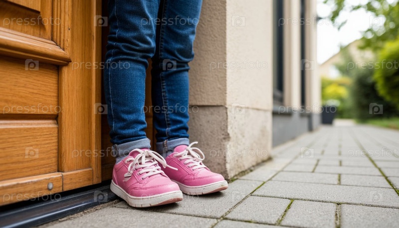 Ноги ребенка находятся за дверью