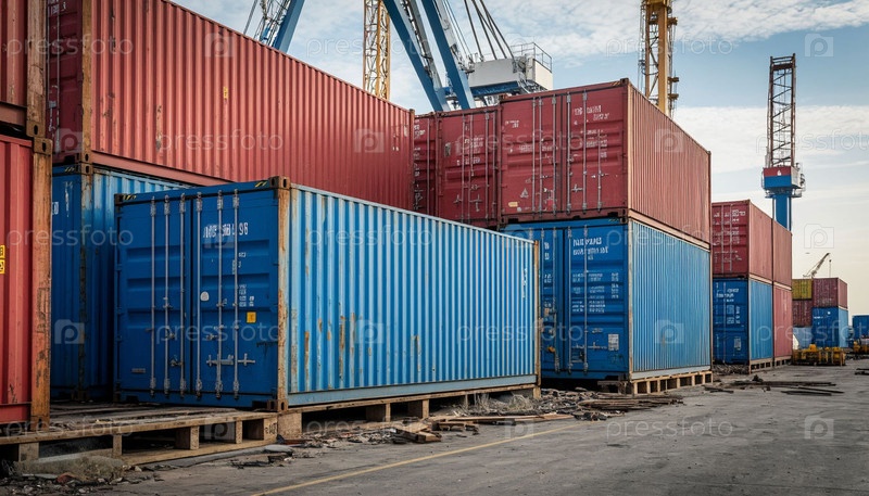Контейнеры в морском порту, торгово-экономическая концепция