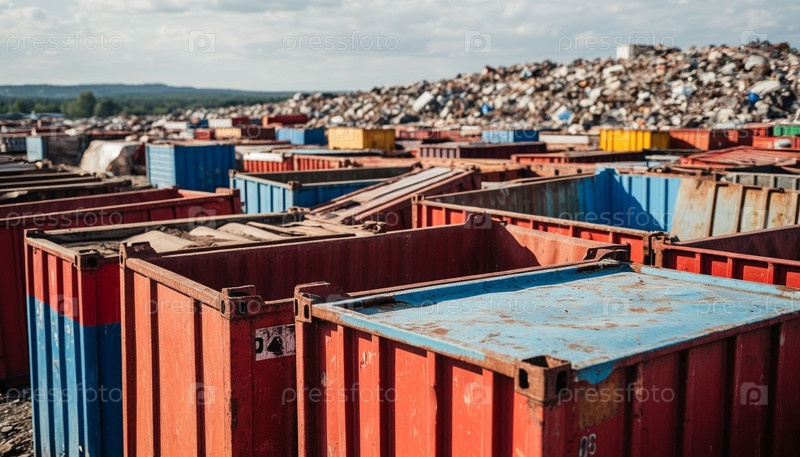 Пустые контейнеры на свалке, концепция упадка торговли и экономики