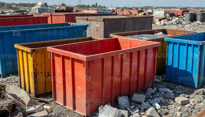 Пустые контейнеры на свалке, концепция упадка торговли и экономики